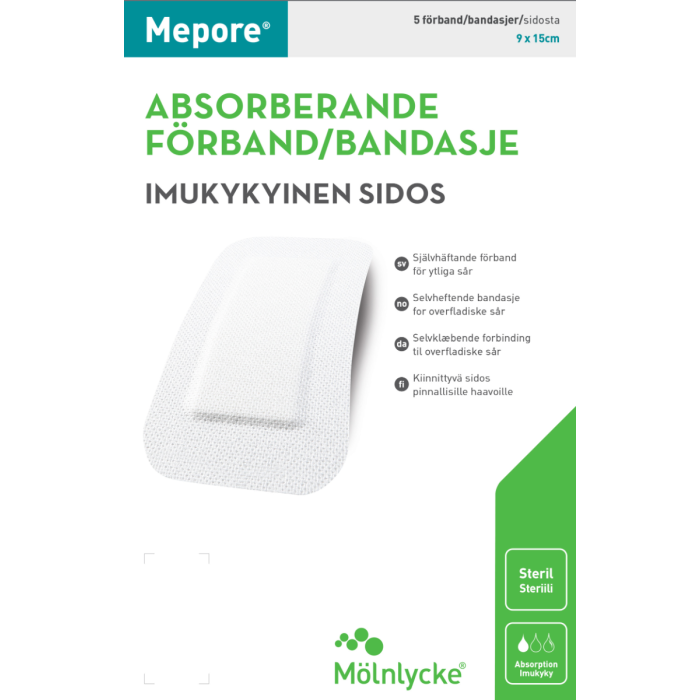 Mepore kiinnittyvä sidos 9x15 cm 5 kpl